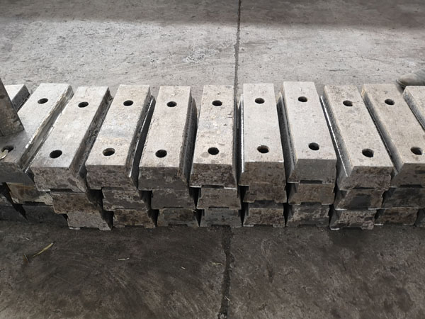 5、根據(jù)工況條件配料,根據(jù)客戶來(lái)圖來(lái)樣定做各類異形破碎機(jī)錘頭;